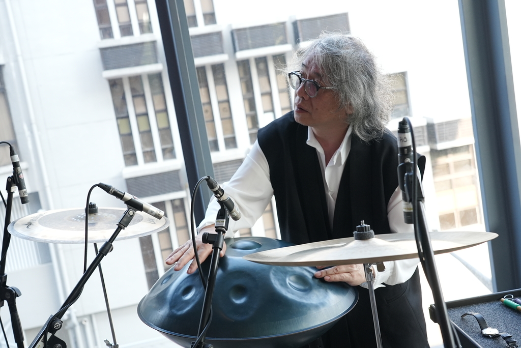 《緣舞場》系列其中一大特色是現場樂手的即興演出,有些演出是參與藝術家會共同經歷數天的研習週,有些時候是演出當天在開演前聚一聚,大家商議一下架構流程,之後就各自起飛。 Edmund 是經朋友介紹參與「多空間」的演出,最早參與的製作就是《緣舞場》系列。