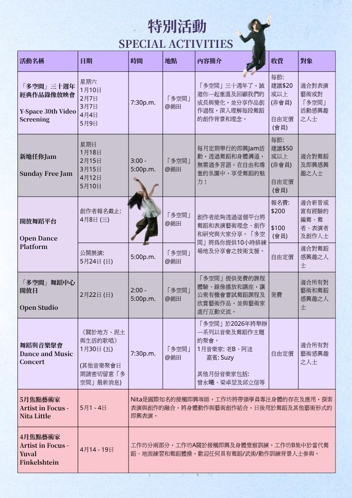 「多空間」2026年1至6月課程及活動