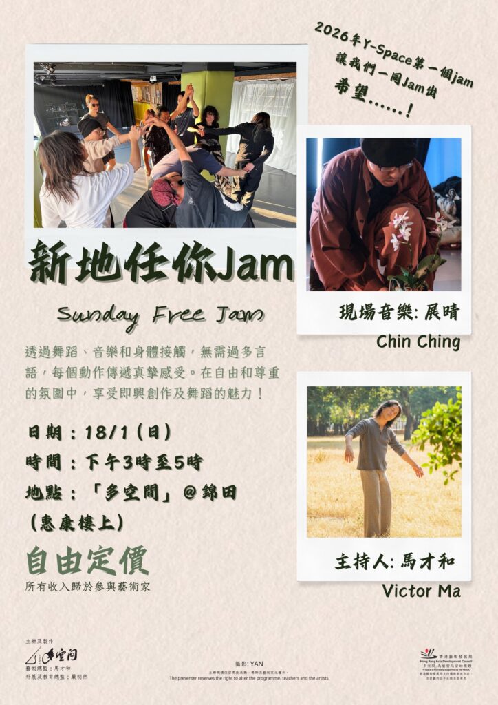 「多空間」將會在舞蹈中心舉行即興Jam,並設現場音樂,活動開放給不同界別人士參與。透過舞蹈和身體接觸溝通,無需過多言語,每個動作傳遞真摯感受。在自由和尊重的氛圍中,享受舞蹈的魅力!
